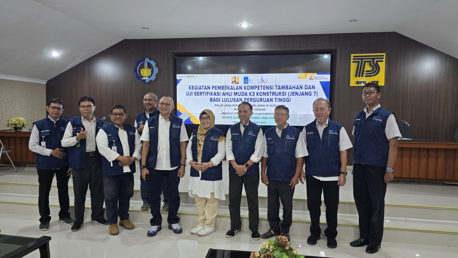 Puluhan mahasiswa hampir mencapai 100 peserta dari Institut Teknologi Sepuluh Nopember (ITS) Surabaya mengikuti kegiatan Uji Sertifikasi Kompetensi Kerja (SKK) Ahli Muda K3 Konstruksi Jenjang 7 untuk Freshgraduate, yang dilaksanakan pada 23 Mei 2025 di Kampus ITS itu sendiri. Kegiatan ini merupakan hasil kolaborasi antara pihak kampus dengan Lembaga Sertifikasi Profesi (LSP) LSP MKN, sebagai bentuk dukungan nyata terhadap peningkatan daya saing lulusan di dunia kerja konstruksi. Uji SKK ini dirancang khusus untuk peserta yang baru menyelesaikan pendidikan, dengan fokus pada penguatan kompetensi dasar di bidang Keselamatan dan Kesehatan Kerja (K3) Konstruksi.